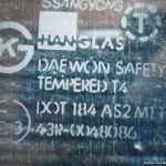 Triángulo Cristal de la puerta trasero izquierdo /Dreieck Scheibe Seitenscheibe hinten links/Triangle door Window rear left/SsangYong Korando Family 43R0048086 DOT184AS2M114 E3 DAEWON SAFETY TEMPERED